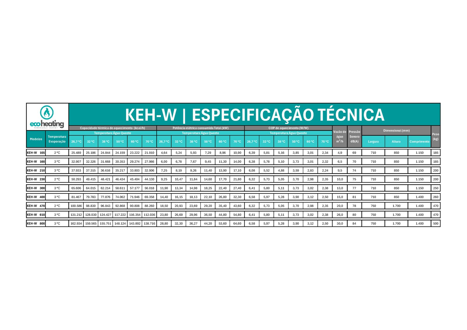 A KEH-W é uma bomba de calor água-água projetada para usar o retorno de agua do chiller a ~12ºC como fonte de energia. Já o seu rejeito é uma agua mais fria. O delta de retirada em cada instante é de 5ºC. Elevando em muito o global geral do equipamento: sendo aquecimento e refrigeração de forma integrada. Oferece set-point de até 80 °C, CLP com IHM e log de eventos, espelhamento por ethernet, protocolos Modbus/BACnet, carenagem empilhável e tampas removíveis para manutenção. Utiliza R410A/R134a, com versões trifásicas 220/380 V (60 Hz) e trocadores brasados em aço inox.