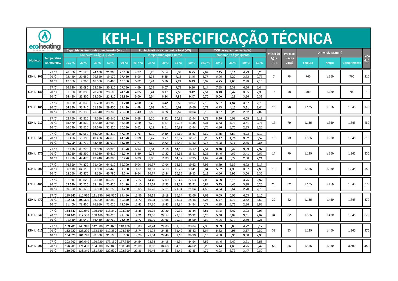 A KEH-L é uma bomba de calor ar-água projetada para substituir ou integrar sistemas convencionais (gás, pellets ou solar) no aquecimento de água em ambientes comerciais e industriais. Com set-point de até 80 °C, operação mesmo em 0 °C de temperatura ambiente e controle inteligente via CLP com IHM (espelhável no celular), entrega alto desempenho com baixo ruído. Integra facilmente ao BMS via Modbus ou BACnet, possui carenagem empilhável para otimizar espaço e é alimentada em 220 V ou 380 V trifásico (60 Hz). Produção 100% no Brasil.