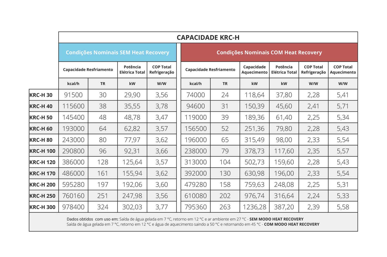 Recuperação de calor do sistema de água gelada (12 °C → 7 °C)