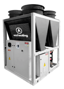 Nosso sistema oferece aquecimento e refrigeração renováveis em um só equipamento. Conectado à rede elétrica, ele substitui ou complementa sistemas convencionais, garantindo água gelada entre 6 °C e 25 °C e água quente simultânea até 60 °C.
